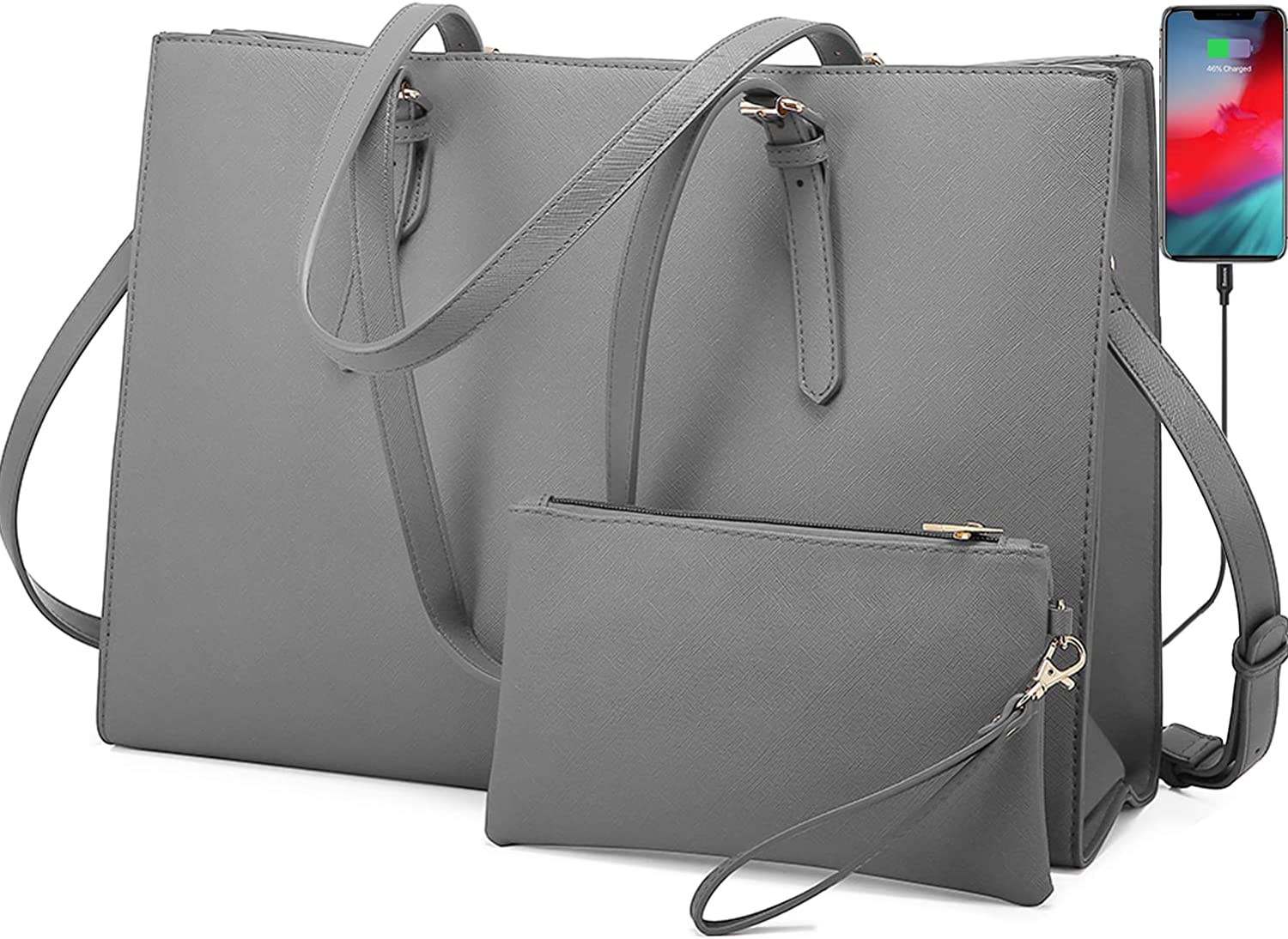 【Multi-pocket Design】Multiple pockets keep your belongings organized. The handbag structure consists of a 15.6-inch laptop pocket, an iPad pocket, a middle zipper pocket, an internal side zipper pocket, two large opening compartments, two small opening pockets, two pen pockets and an outer zipper pocket. And an external USB charging mouth.