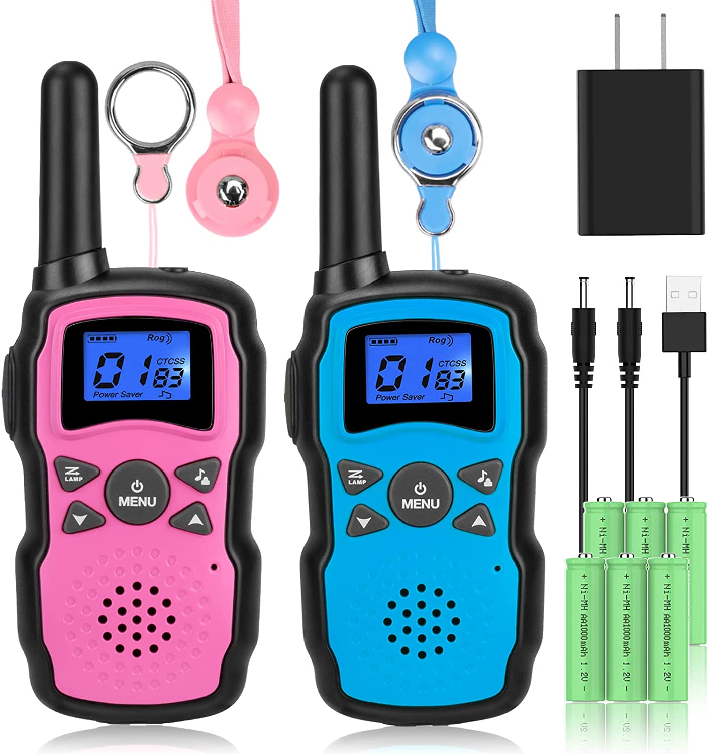 • ??【Rechargeable Walkie Talkie 2 Pack】: Each order comes with 1 USB charger and 6 rechargeable AA batteries (3000mAh for a walkie talkie). You don't need to pay for extra batteries anymore, Save money and stress for you. 7 days of long standby with excellent battery life. Fast charging,convenient and time-saving. And each one can have their own color to avoid fighting
