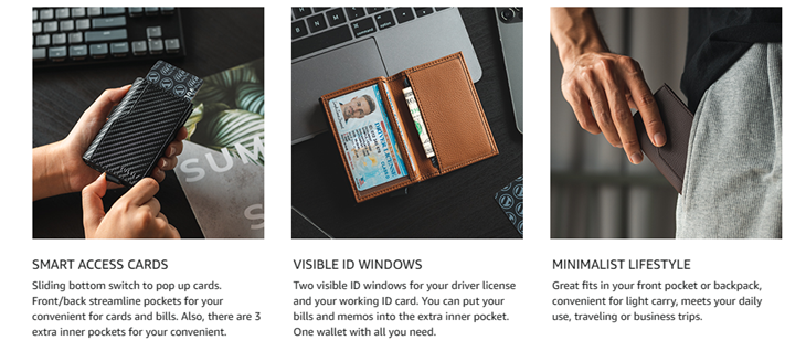 HOLD 12 CARDS WITH ID WINDOW: Hold 5 cards in pop up card case. Design with 2 visible ID window, and front/back/inner slots for cards.
