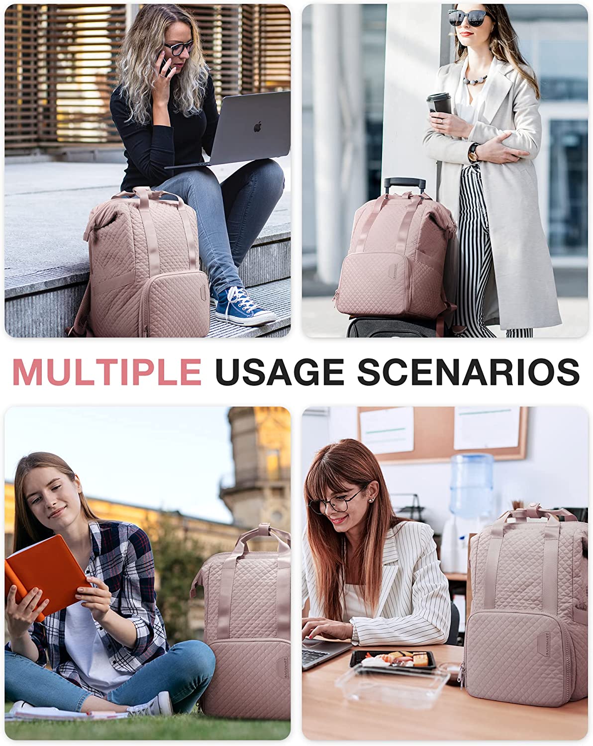 BAGSMART Lunch Backpack, 15.6 Inch Laptop Backpack for Women, Insulated Cooler Lunch Box Water Resistant Leakproof Lunch Bag College School Bookbag for Women Men Daily Work Travel (Pink)
