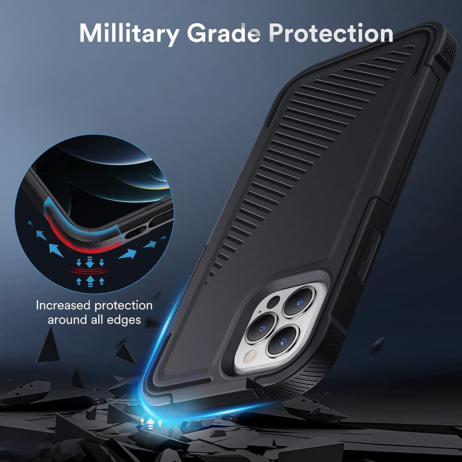 This mobile phone case passes U.S. military grade drop test standards (1.22m) and can be dropped from roughly 3m high.