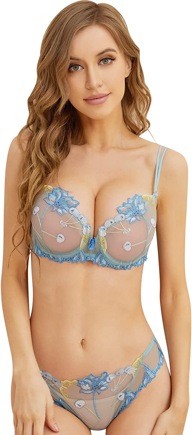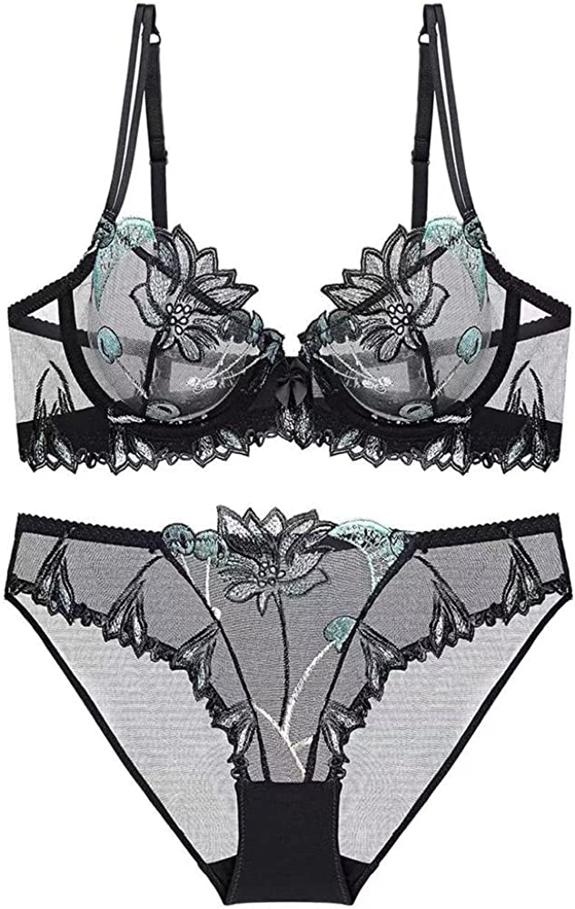 Guoeappa Women's Sexy Soft Lace Lingerie Set See Through Underwear Floral Lace Underwire Sheer Bra and Panty Set