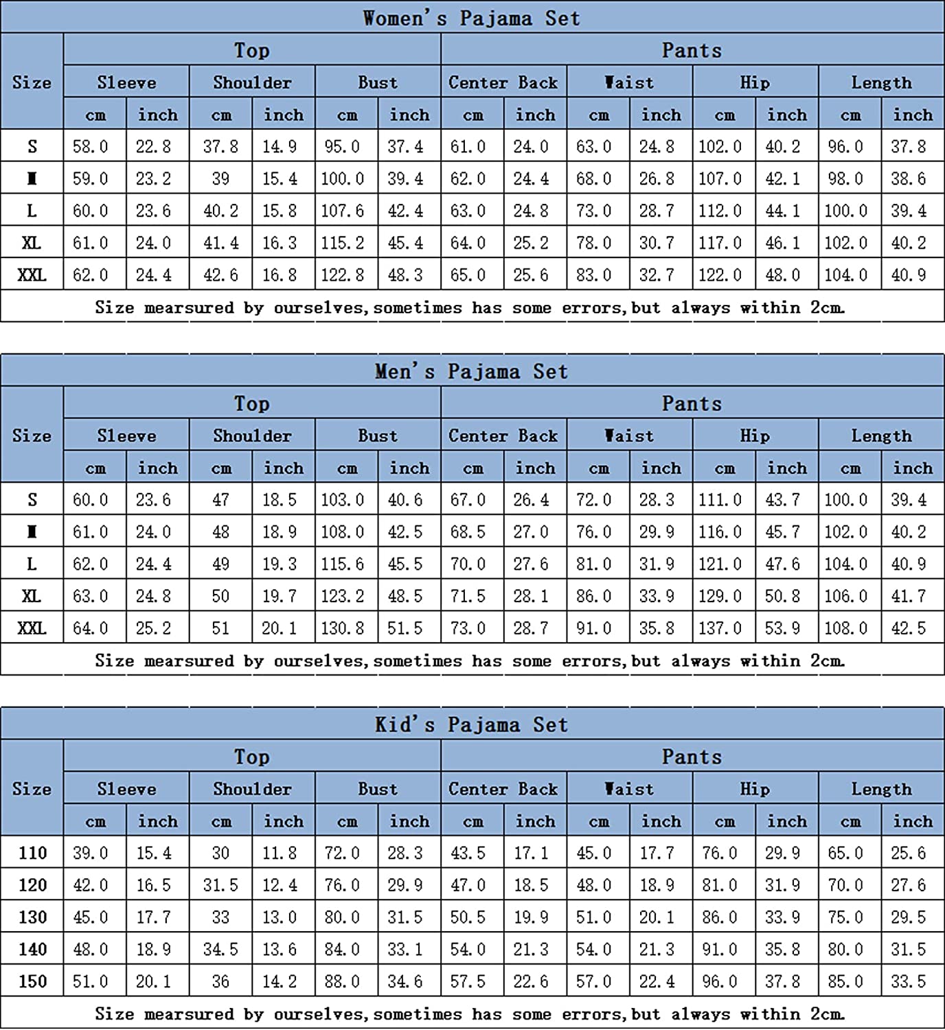 - ?NOTES - ?Holiday pajama sets with sizes for women, men, girls, boys. ?Please purchase each size individually; ?Matching pajamas sets are sold separately.
