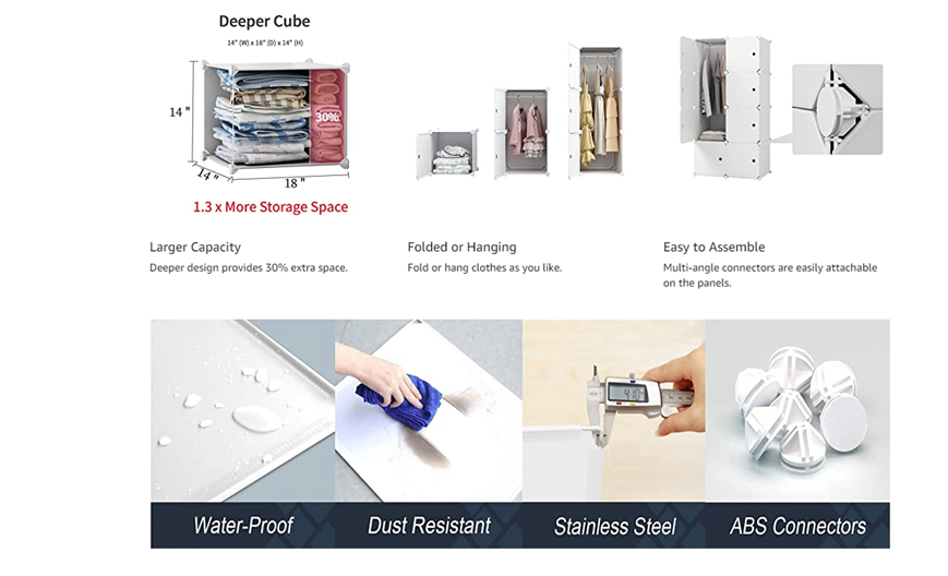 ✔【ADJUSTABLE & ATTRACTIVE】 Closet can be shaped by your DIY in any way that suits your spaces and needs, just depend on how you structure the cube! Flexible and can fit into your every décor and spaces, make your home stunning.