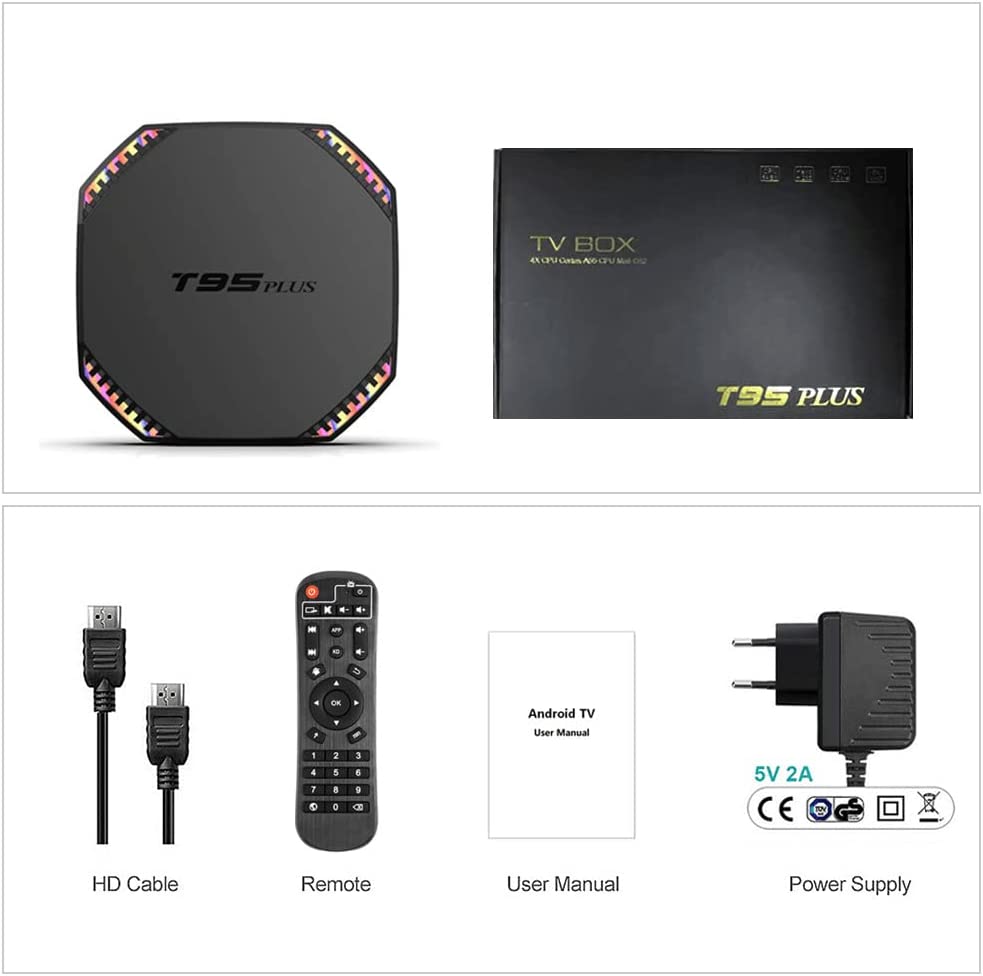 Package included:T95 Plus Box;HD cable;IR Remote;Power adapter;User Manual