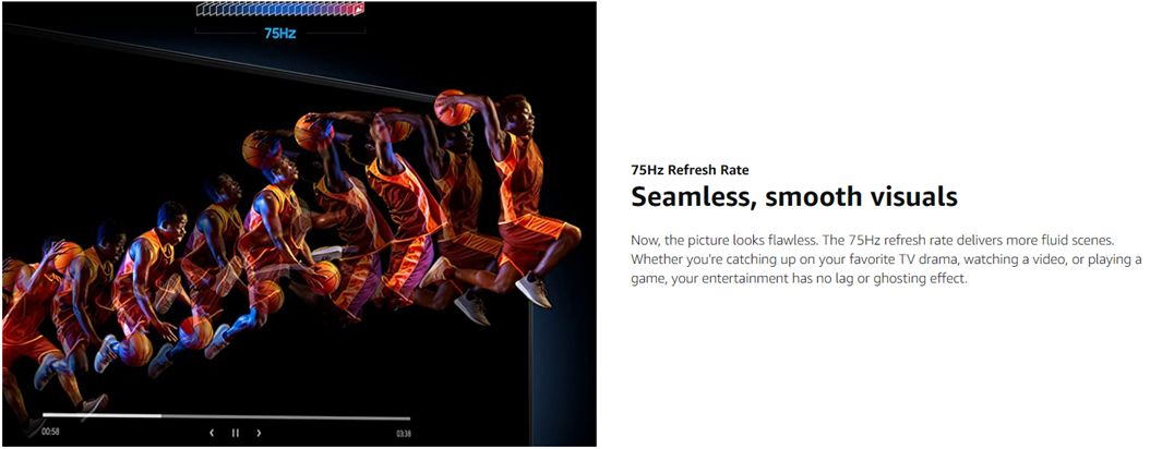 - SEAMLESS, SMOOTH VISUALS: Now, the picture looks flawless. The 75Hz refresh rate delivers more fluid scenes. Whether you're catching up on your favorite TV drama, watching a video, or playing a game, your entertainment has no lag or ghosting effect