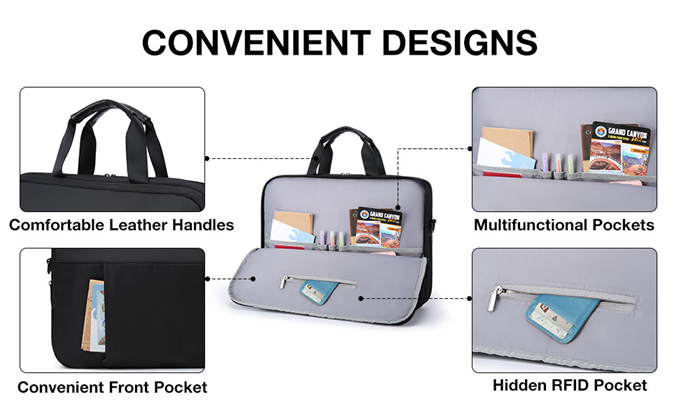 - LAPTOP PROTECTION- The dedicated laptop compartment is fully padded with EVA foam. The laptop bag can offer the optimal protection for your laptop. You don't need to worry about your notebook getting crashed on the travelling.