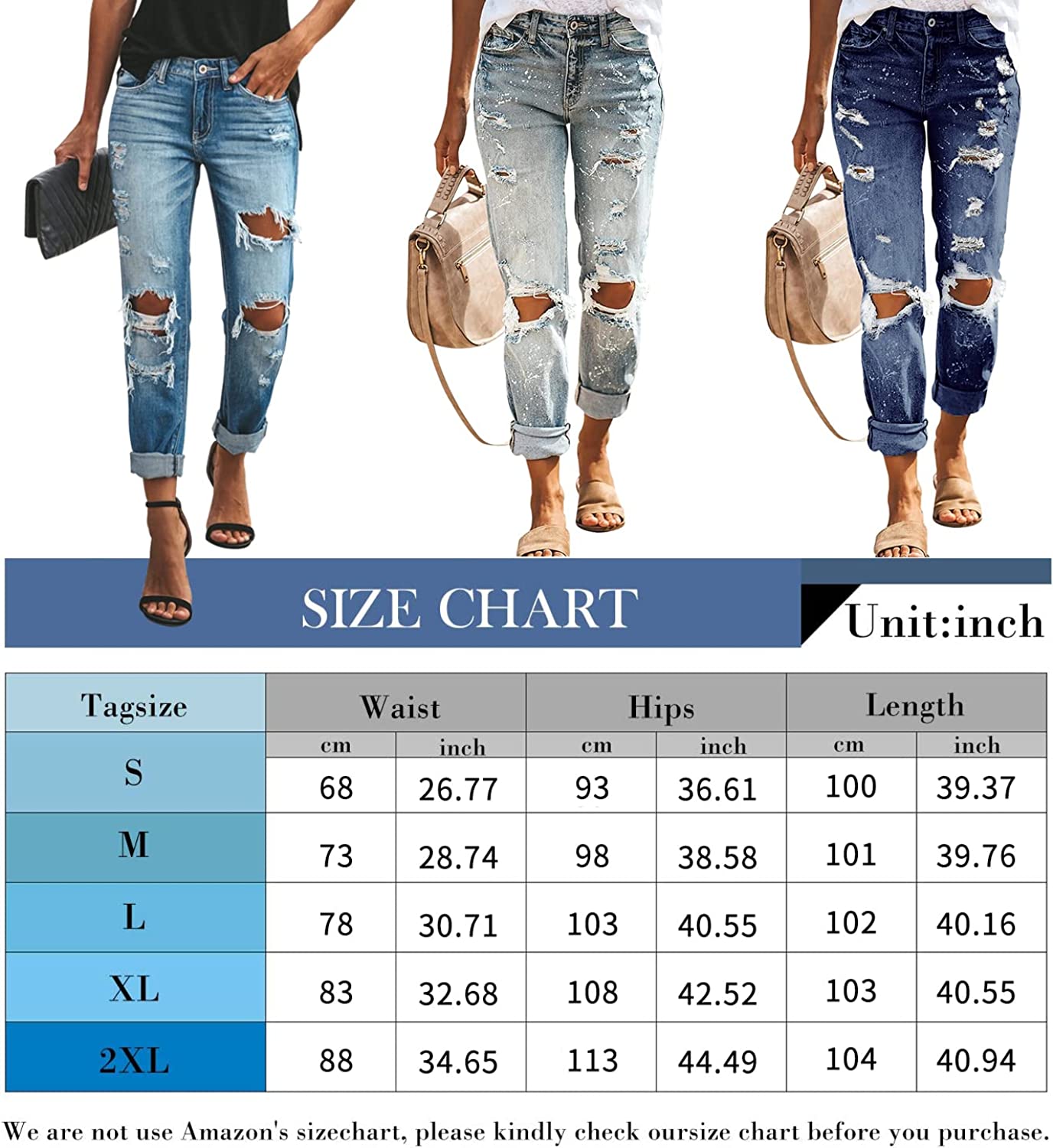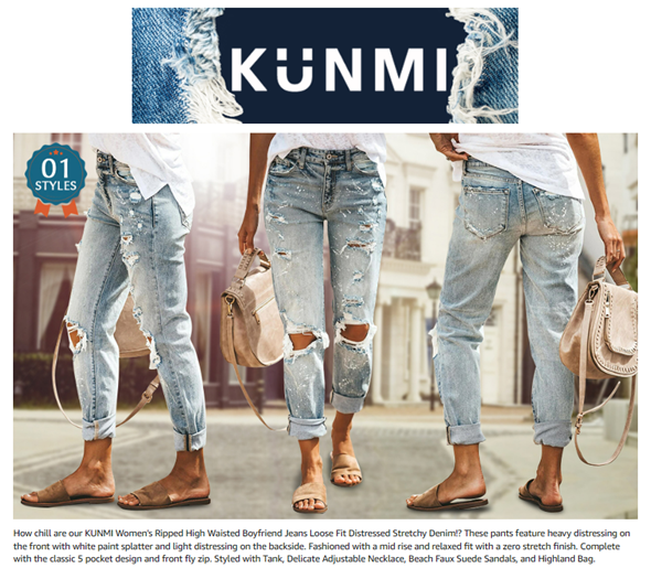 • KUNMI womens ripped jeans is made with lightweight and soft denim super stretch material, which are flexible and breathable, comfortable to wear. Even after repeated wearing, this denim stays true to original form.