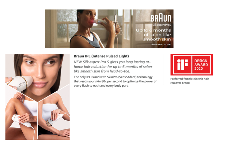 • Get up to 6 MONTHS OF SALON-LIKE SMOOTH SKIN from home. Visible hair reduction in just 4 weeks*. *74% hair reduction after 12 weekly sessions (combined value for bikini, leg, axilla). Individual results may vary.