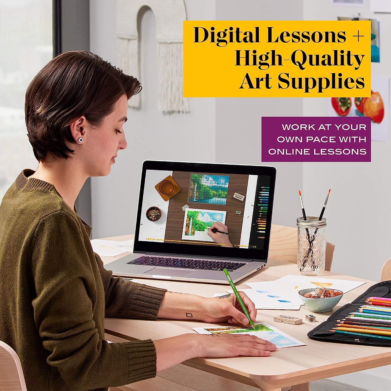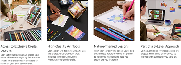 • Learn to draw with digital lessons paired with high-quality art supplies