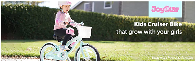 • ELEGANT SIMPLE DESIGN-JOYSTAR Kids Cruiser Bike is the perfect little kids bicycle for cruising the neighbourhood pavements and paths. With a light steel frame and rims the children can cruise up to speed with ease but rest assured that when it's time to pull up fast the combined backpedal rear brake. The kids bike is smooth and easy to pedal making it a fun cruiser for kids to ride.