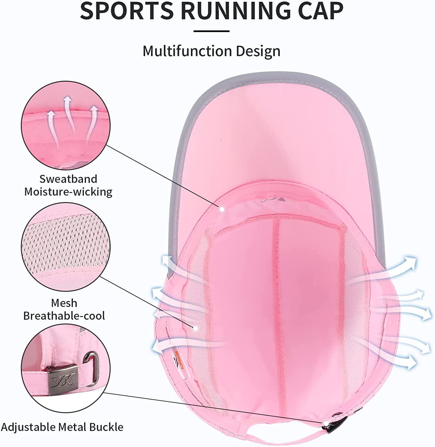 • ☀ COOL SPORTS CAP: The inner band of our cooling athletic running hats is a multi-layer dynamic system that continuously pulls moisture from your forehead for quick evaporation, to stop the sweat from dripping into your eyes. The two-side mesh design allows for moisture and heat to easily escape these caps, which not only keeps your cap cool, but you’ll also stay dry.
