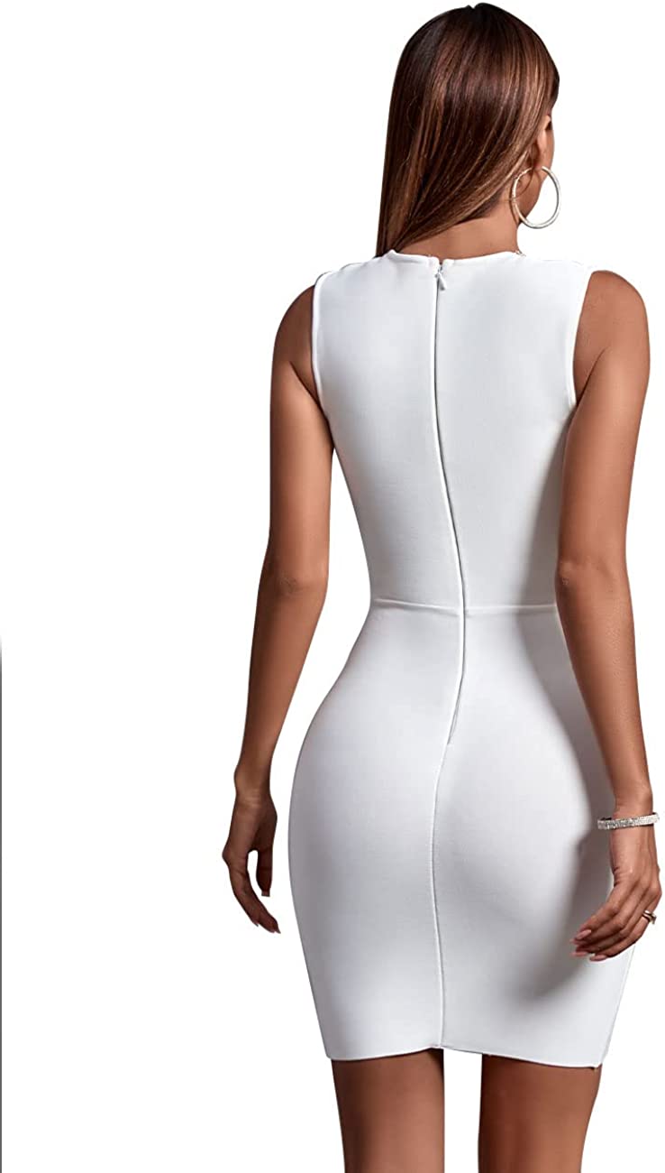 UONBOX Women's Bandage V Neck Bodycon Sleeveless Split Mini Party Club Dress