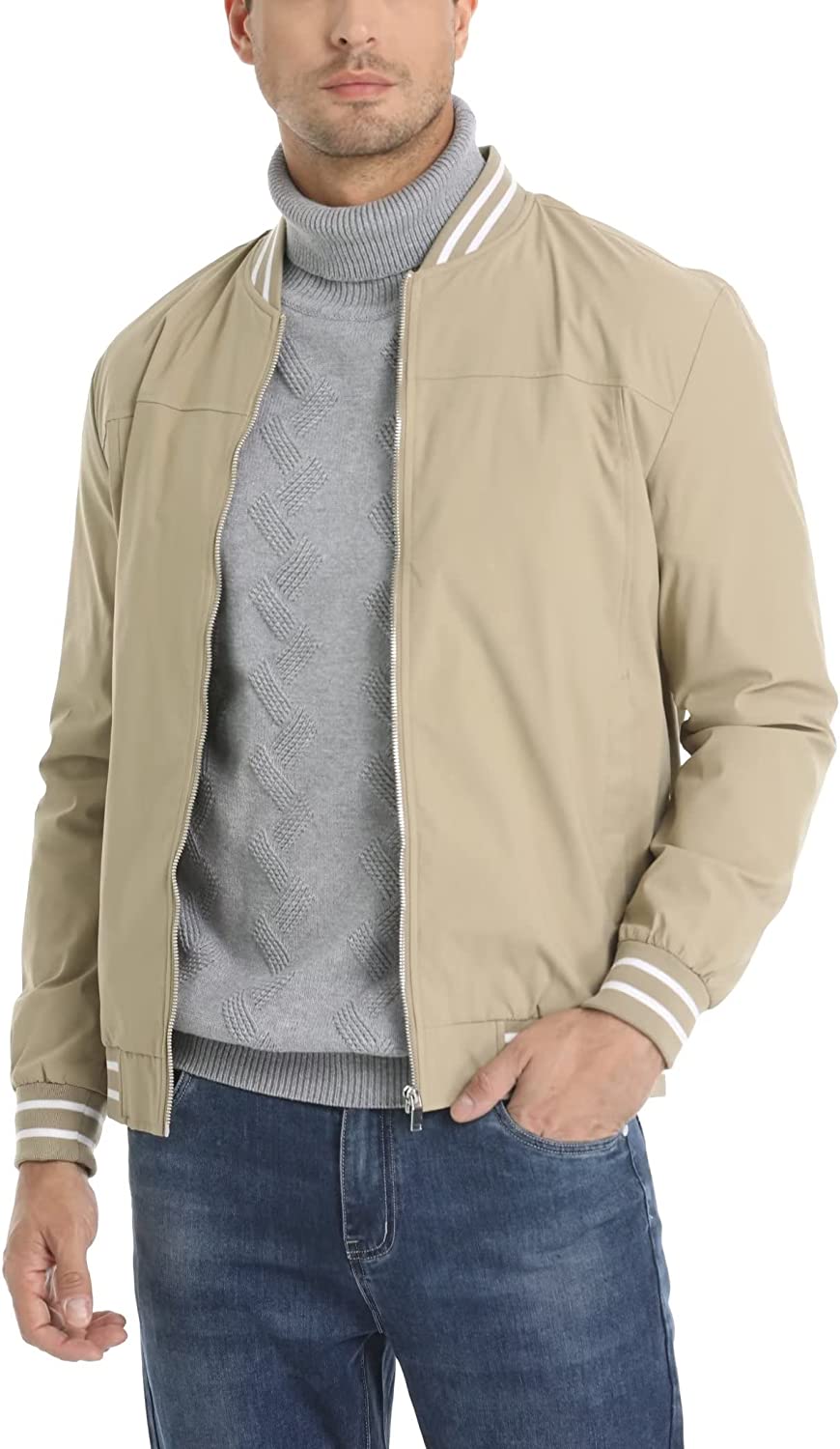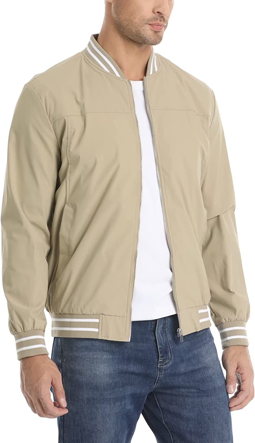 MAGCOMSEN Mens Bomber Jackets Lightweight Windbreaker Full Zip Spring Jackets Casual Stylish with Pockets