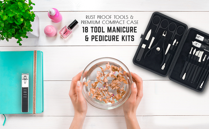 • 18 PIECES SET: The 18 tools manicure and Pedicure Set includes all the tools you need for grooming your hands, feet and face. This tool also includes a small sized Nail Filer for your tiny toe nails They are of an excellent quality and one that’ll last you a long time. You can sterilize and clean these tools after each use for a longer life. They come in a perfect handy case that fits in your bag just like a small wallet