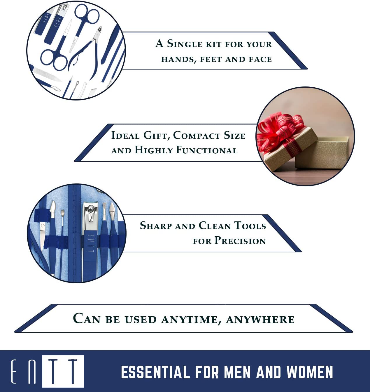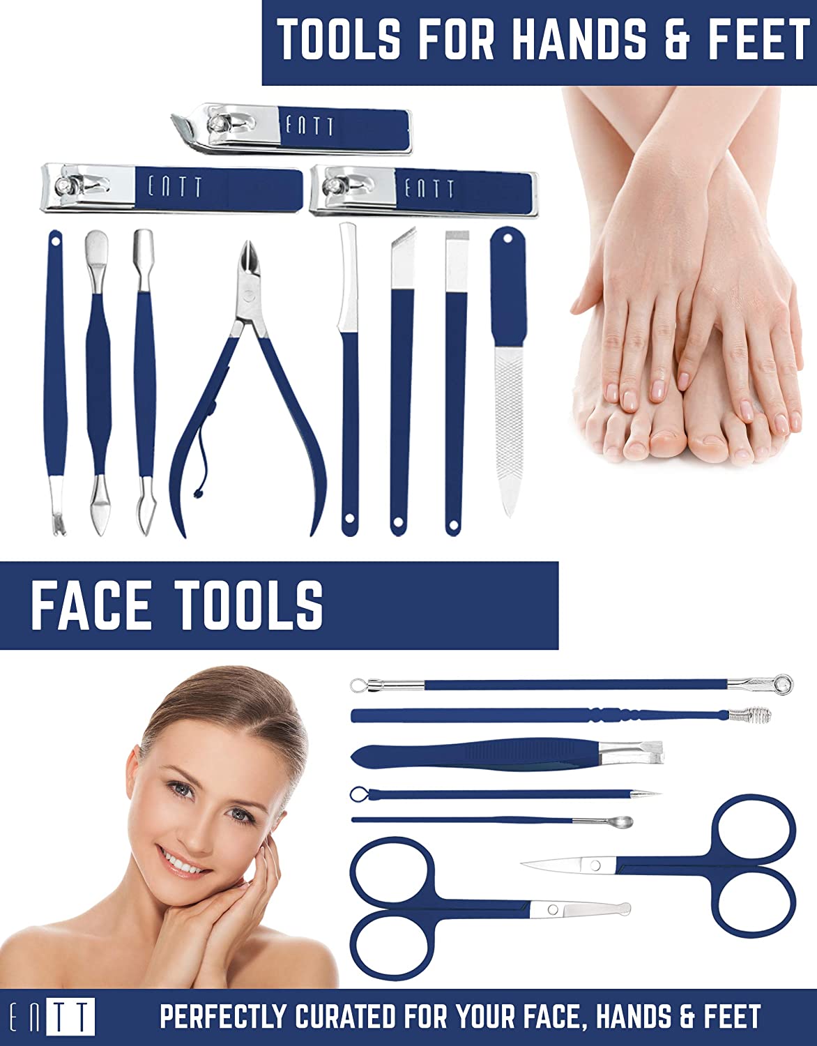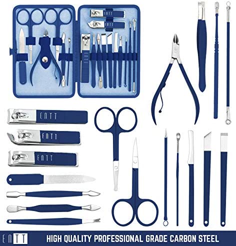 ENTT Pedicure Manicure Kit - Manicure Tools Grooming Kit for Men, Women - 18 PC Rubberized Finish Kit - Premium Quality Professsional Tool Kit - For Travel, Home, All Purpose Set (Blue Case) For Nails