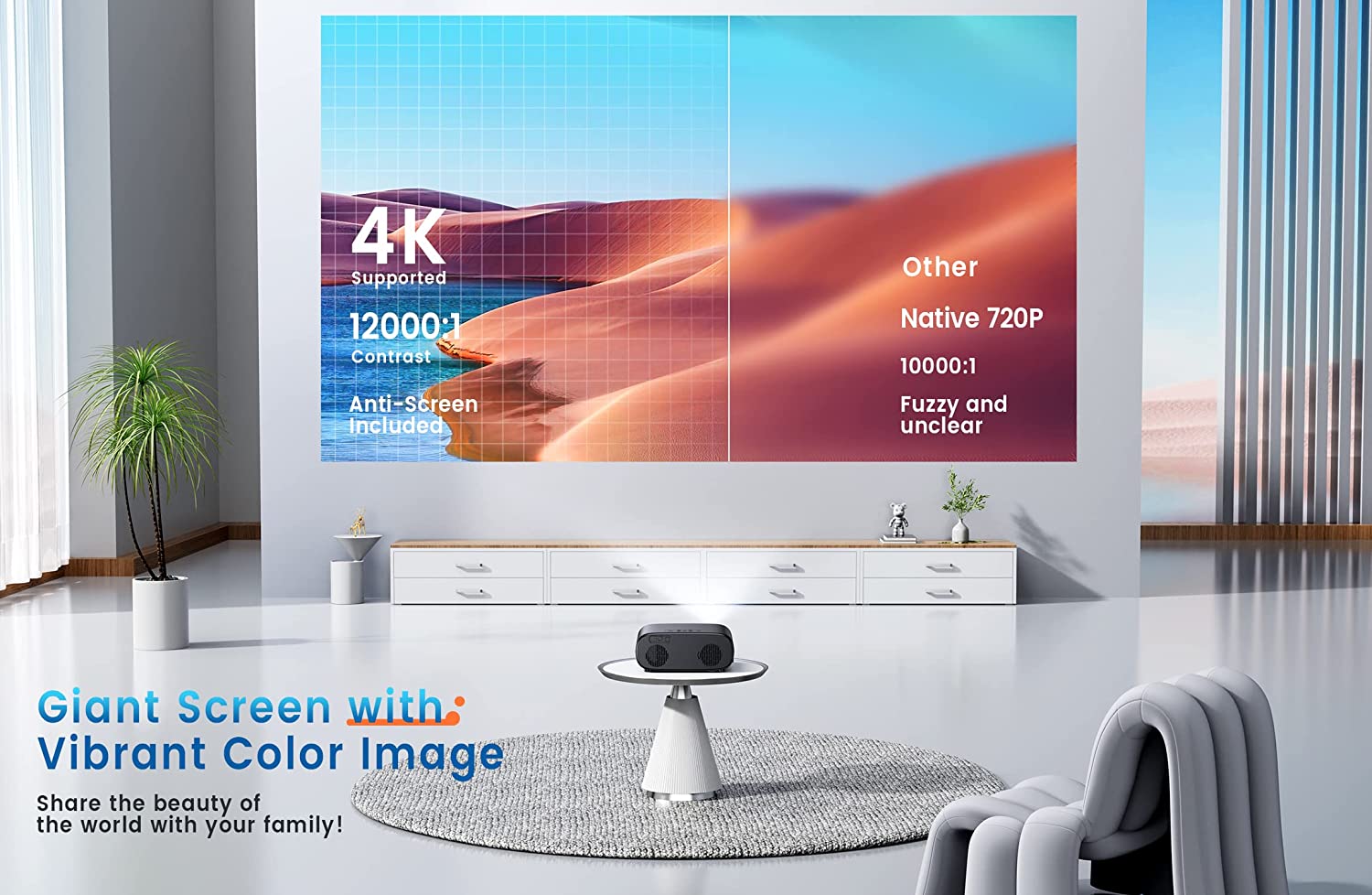 • ▲【18000L Brightness+Native 1080P+ 4K Supported+Screen Included】With imported light-gathering tech glass lens & 19000L Brightness, this HD projector is 35% brighter than other 1080P projectors. Native 1080p resolution projects every detail clearly even hair. 90% wide color gamut and powerful 12000:1 contrast allows this proyector to be used in daytime with crystal clarity. The included 100" anti-light screen improves the contrast ratio by 20% for a more colorful image. Enjoy the visual feast!