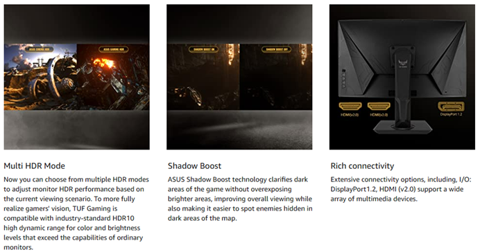 Designed for intense fast-paced games. The Asus TUF Gaming VG27AQ is a 27” WQHD gaming IPS display with 1ms (MPRT) response time and blazing 165Hz refresh rate to give you super-smooth game play. The VG27AQ features G-SYNC compatibility and ELMB Sync technology to eliminate screen tearing and ghosting.