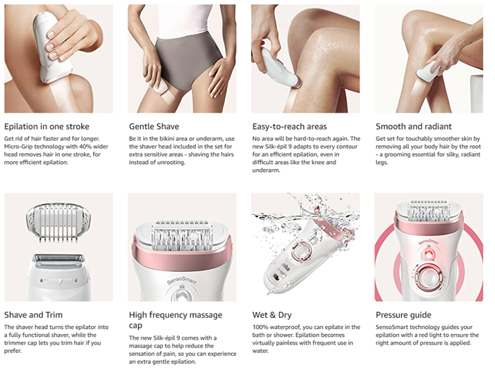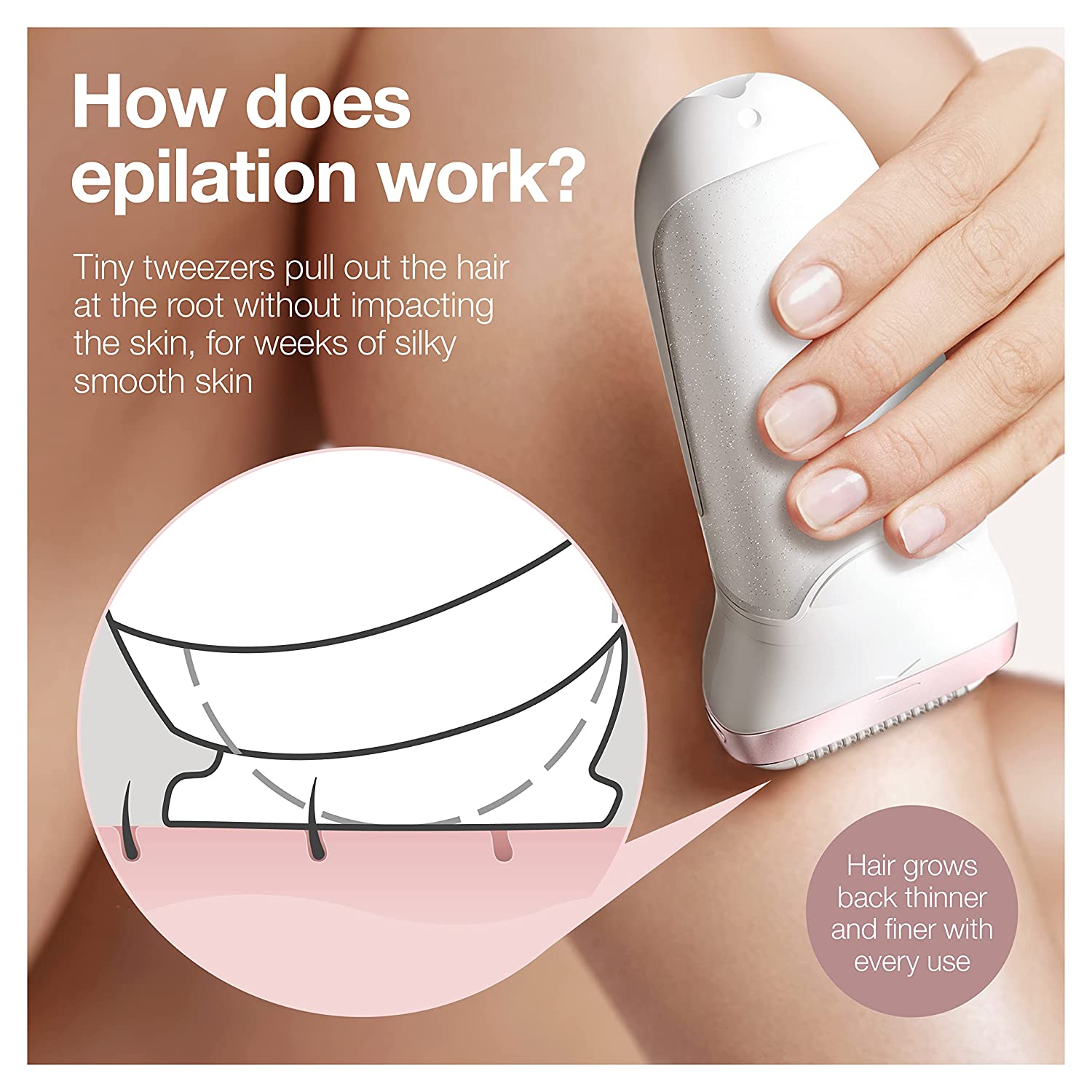• LESS PAIN: 100% waterproof so you can epilate in the bath or shower for a less painful experience