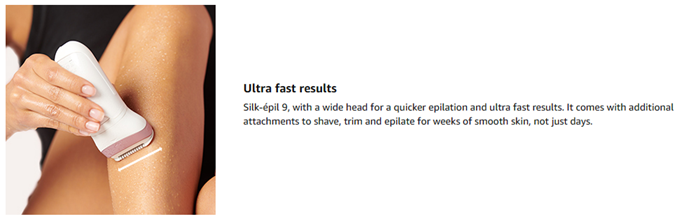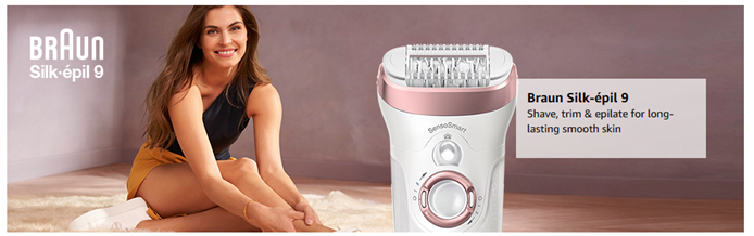 The Braun Silk-epil 9-720 with a wide head for ultra fast epilation. Enjoy weeks of salon-smooth skin thanks to Micro-Grip technology and a 40% wider head that removes hairs as short as 0.5mm. The shaver and trimmer head gives you added options for sensitive areas and the epilator for women is 100% waterproof, which means you can epilate in the bath or shower for a virtually painless experience.Box includes: 1 X Epilator1 X Shaver Head1 X Trimmer Head1 X Pouch1 X Cleaning Brush1 X Charger
