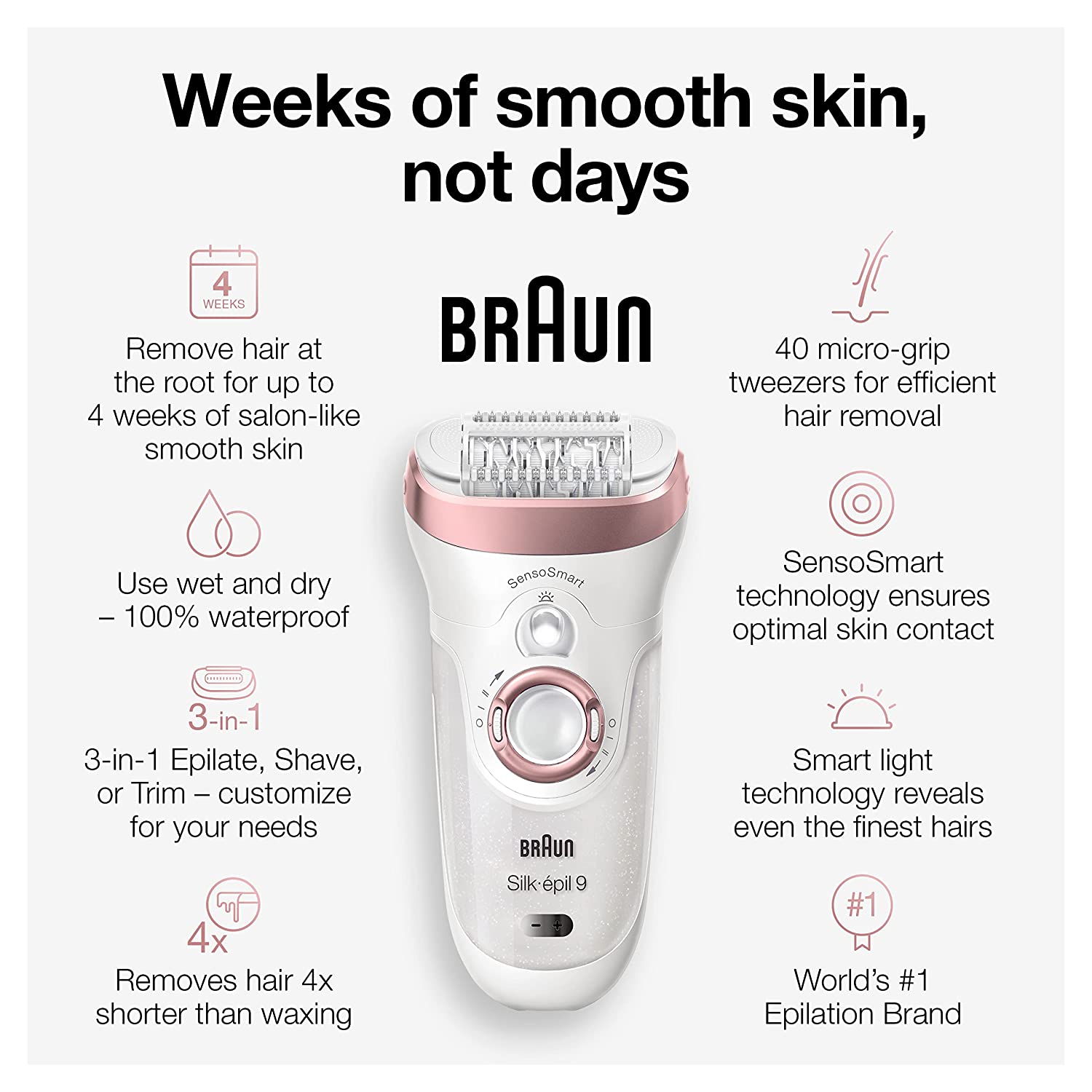 Braun Epilator Silk-épil 9 9-720, Hair Removal Device, Epilator for Women, Wet & Dry, Womens Shaver & Trimmer, Cordless, Rechargeable