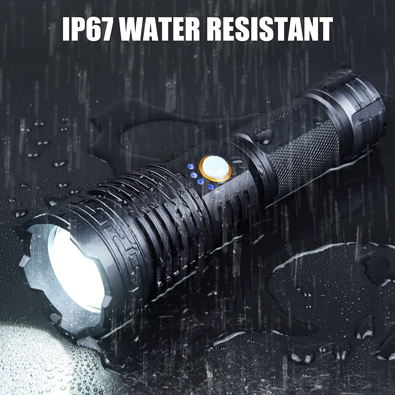?【IP67 WATERPROOF FLASHLIGHTS】?Non slip, IP67 waterproof MT100 LED tactical flashlight uses thickened sealing ring, with IP67 waterproof grade, which is more waterproof. This super bright flashlight will not be invaded by dust, and water spraying at any angle will not affect the use. This powerful emergency flashlight can be used normally in heavy rain, snowstorm or other severe weather and environment, and will not be affected by the weather and cannot work.