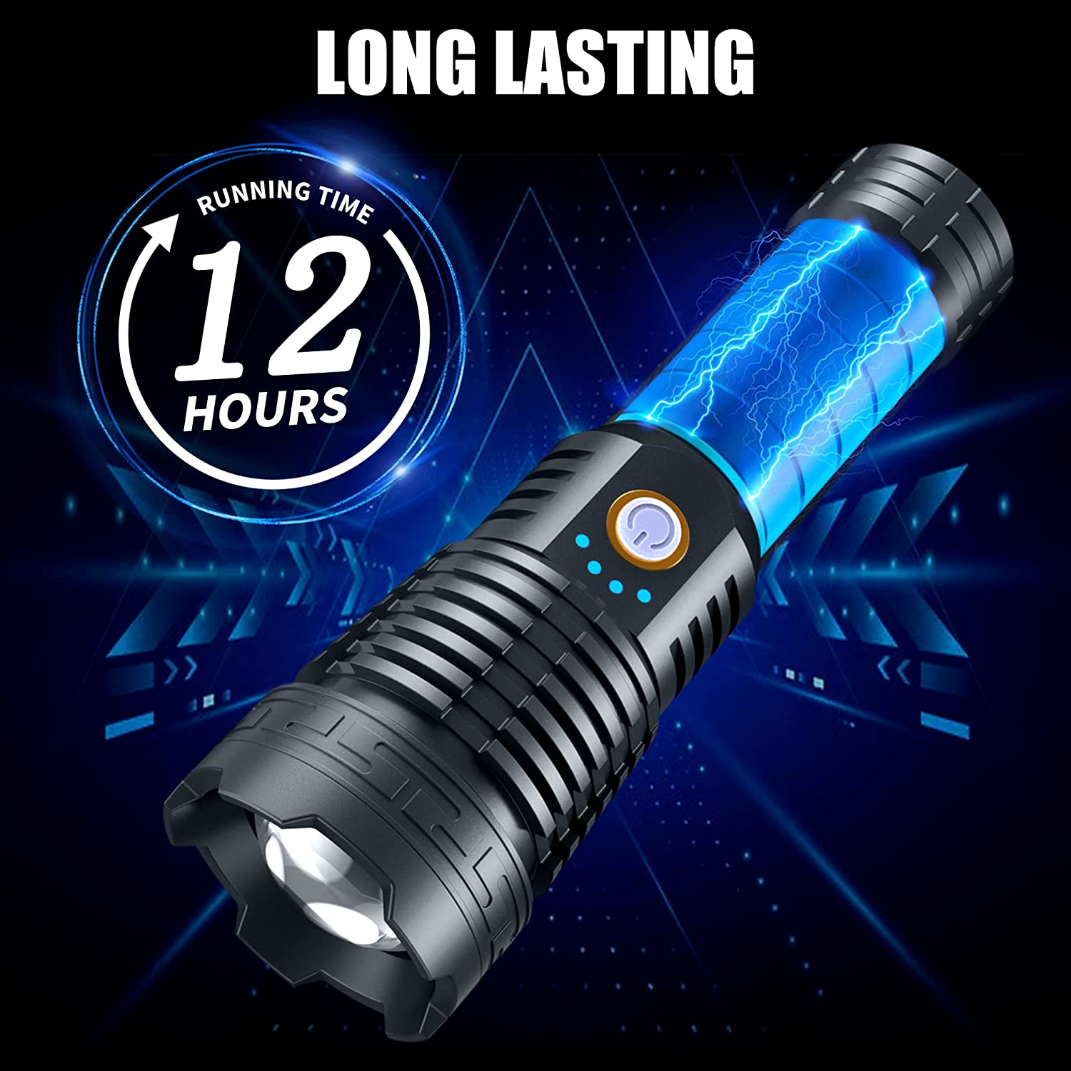 Dsstoc LED Rechargeable Flashlights High Lumens, 90000 Lumens Super Bright Tactical Flashlights with Rechargeable Battery, 5 Modes, Zoomable, IP67 Waterproof Flashlights for Camping Emergencies