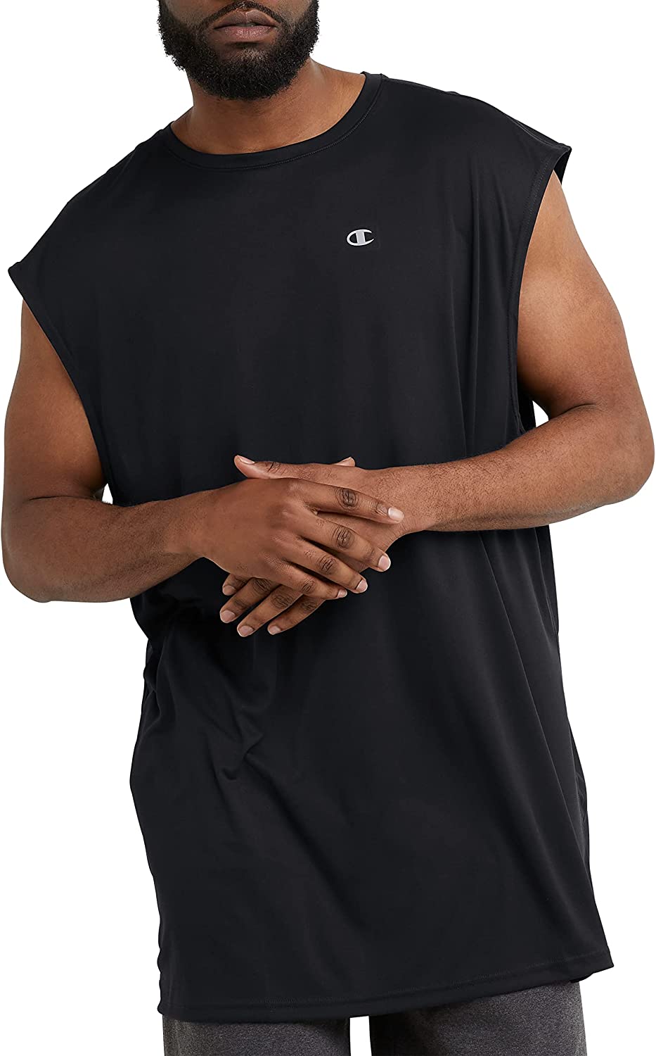 - QUALITY FABRIC - Part of Champion Made Initiative, this men’s muscle tee is made with 100% recycled polyester fibers. (100% Recycled polyester)