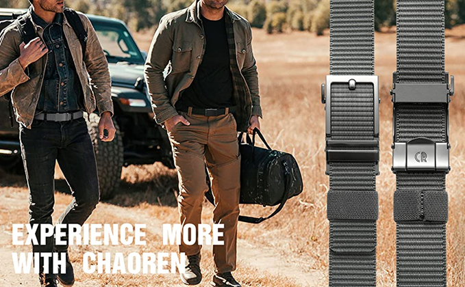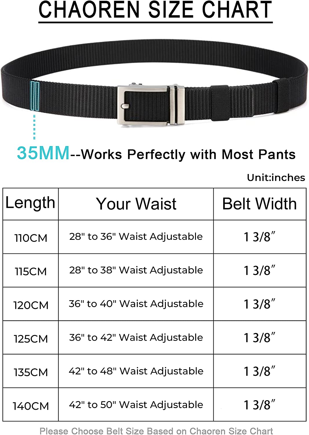 ✦【Exact Fit for Comfort】CHAOREN Ratchet Belt allows for 1/7" micro-adjustments for perfect fit everywhere, higher and easier regulation for an extremely comfortable experience. The innovative removable buckle allows you to cut the nylon belt to your ideal size.