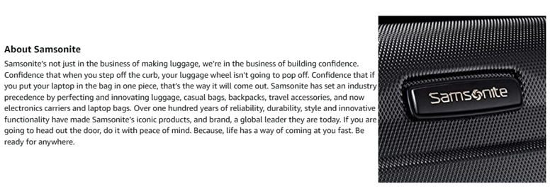 • 10 YEAR LIMITED WARRANTY: Samsonite products are rigorously tested to ensure our products meet stringent standards. This bag comes with a 10-year warranty against defects in materials and workmanship.