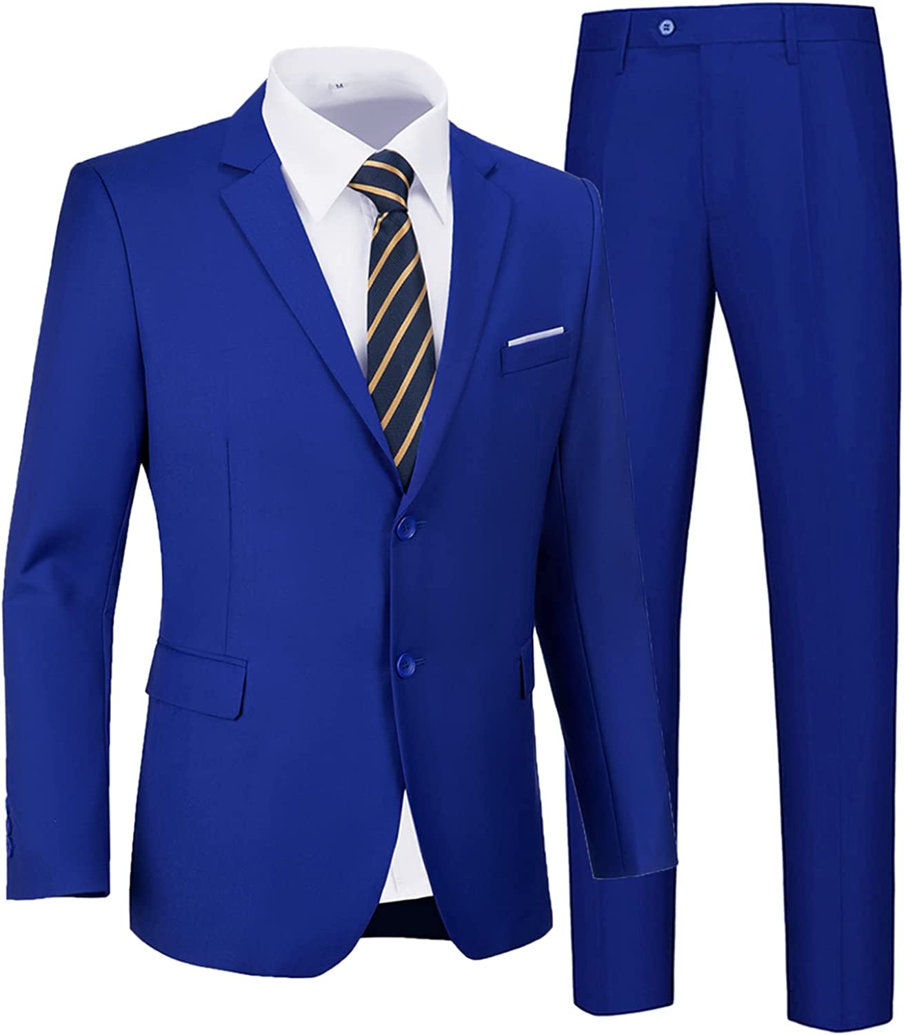 • Detail Design:Blazer:Two Button Closure,Single Breasted,Notch Lapel,Side Vents,Slim Fit Style;Pants:Flat Front,Zippered Fly,Button End and Adjustable Waist Tab.