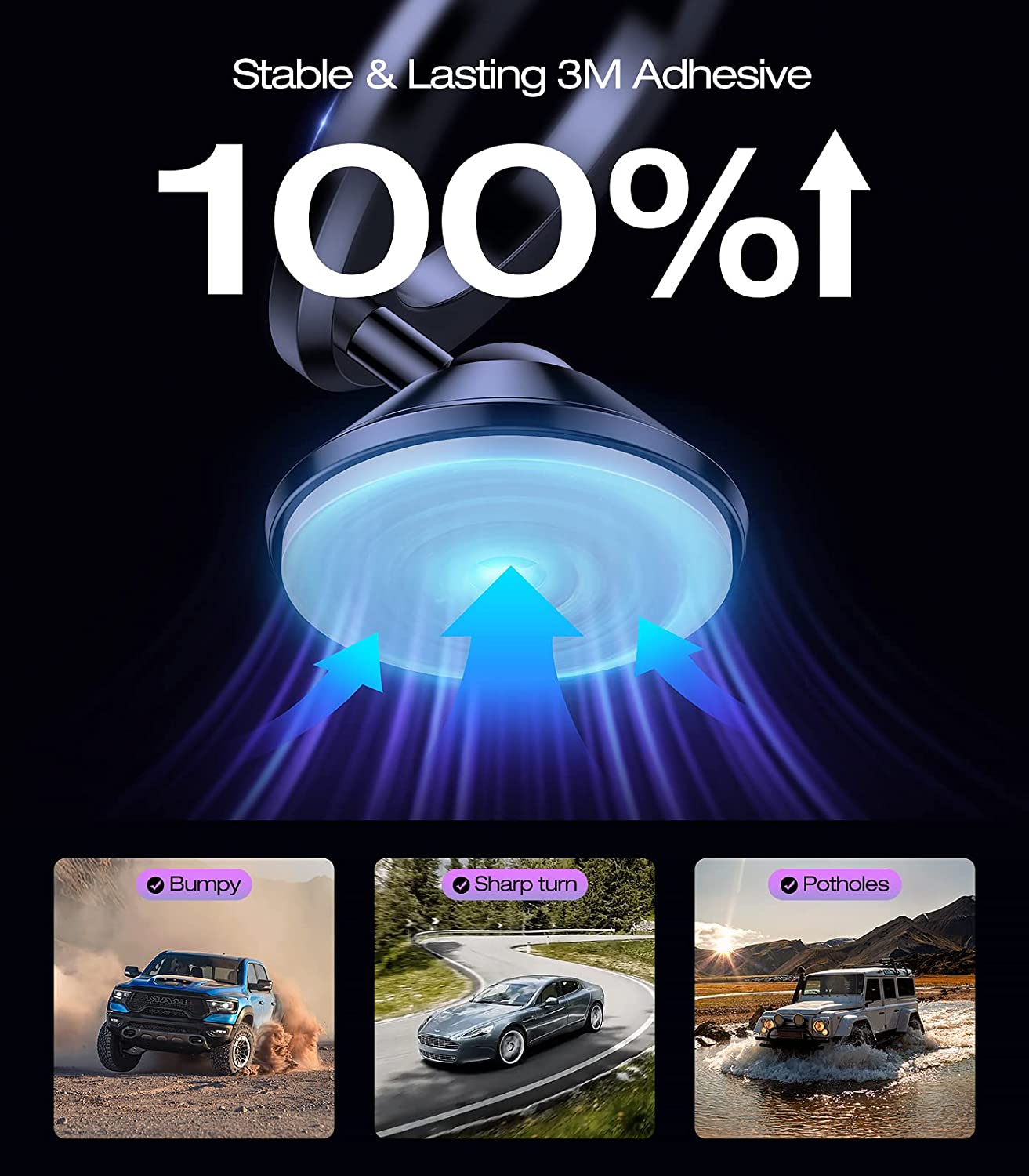 ?Strongest Adhesion & Never Drop - Vicseed magsafe car mount adopt genuine authorized high-quality 3M adhesive, which is super sticky and long-lasting. So even in extreme environments from -40°F to 194°F, this magnet car phone holder mount will not deform or fall off. And we thicken 3M adhesive to 0.06in to ensure a seamless fit on various surfaces, also give 2 different 3M adhesive, so Vicseed magnetic car phone holder can 100% fit the center consoles of various cars
