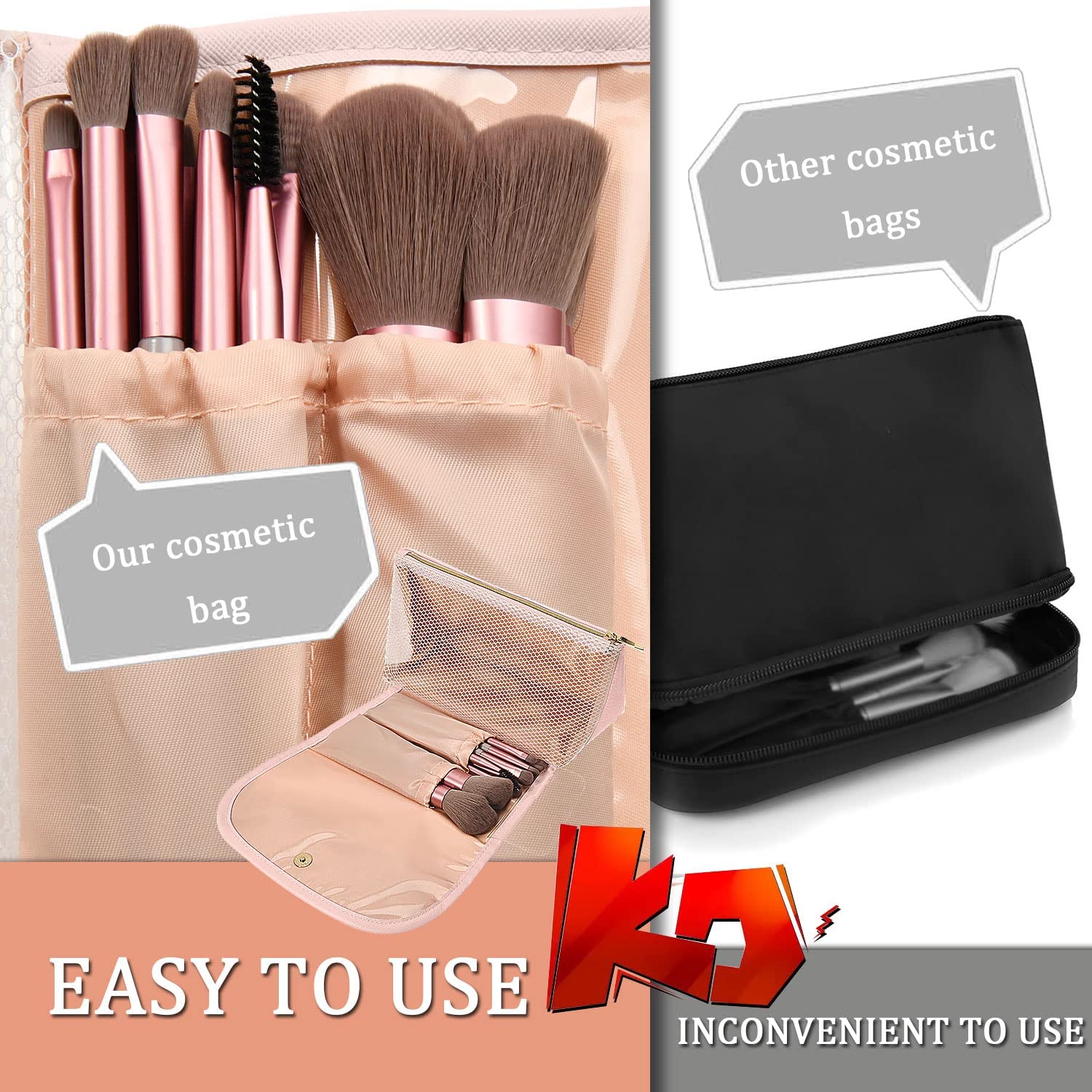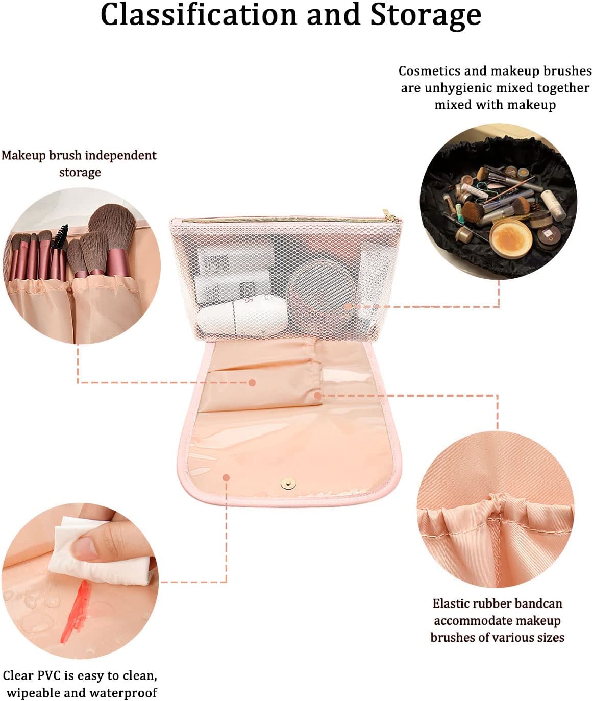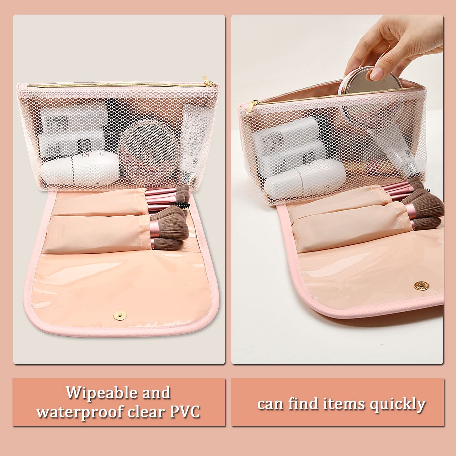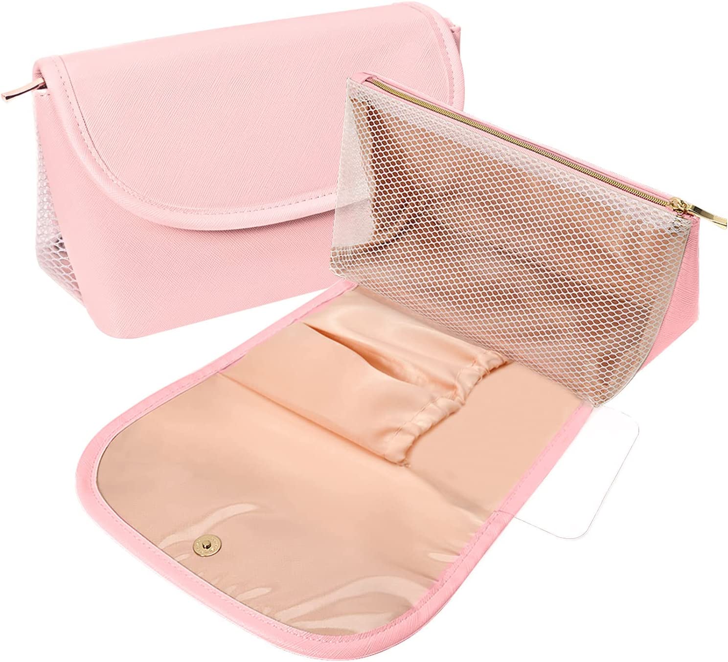 • ?WATERPROOF ,STURDY AND DURABLE : Travel makeup bag is made of high quality premium soft and comfortable PU leather, easy to clean and waterproof internal pvc materials;