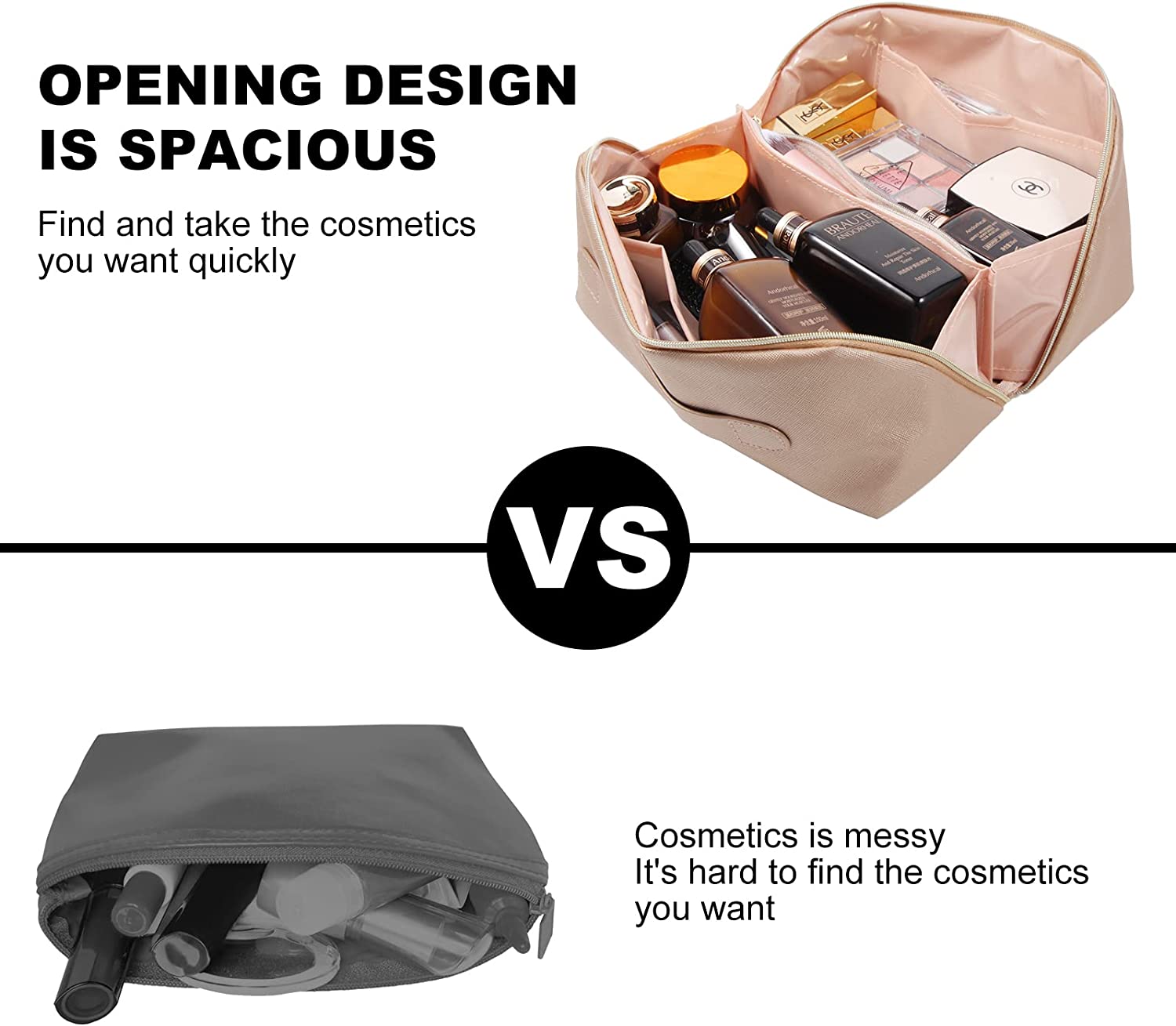 • ?FLAT DESIGN MAKEUP BAG :180ºlarge opening metal zipper plane design cosmetic bags for women,easy to pick up,the top comfortable handle is convenient to carry,portable and convenient make up bag;