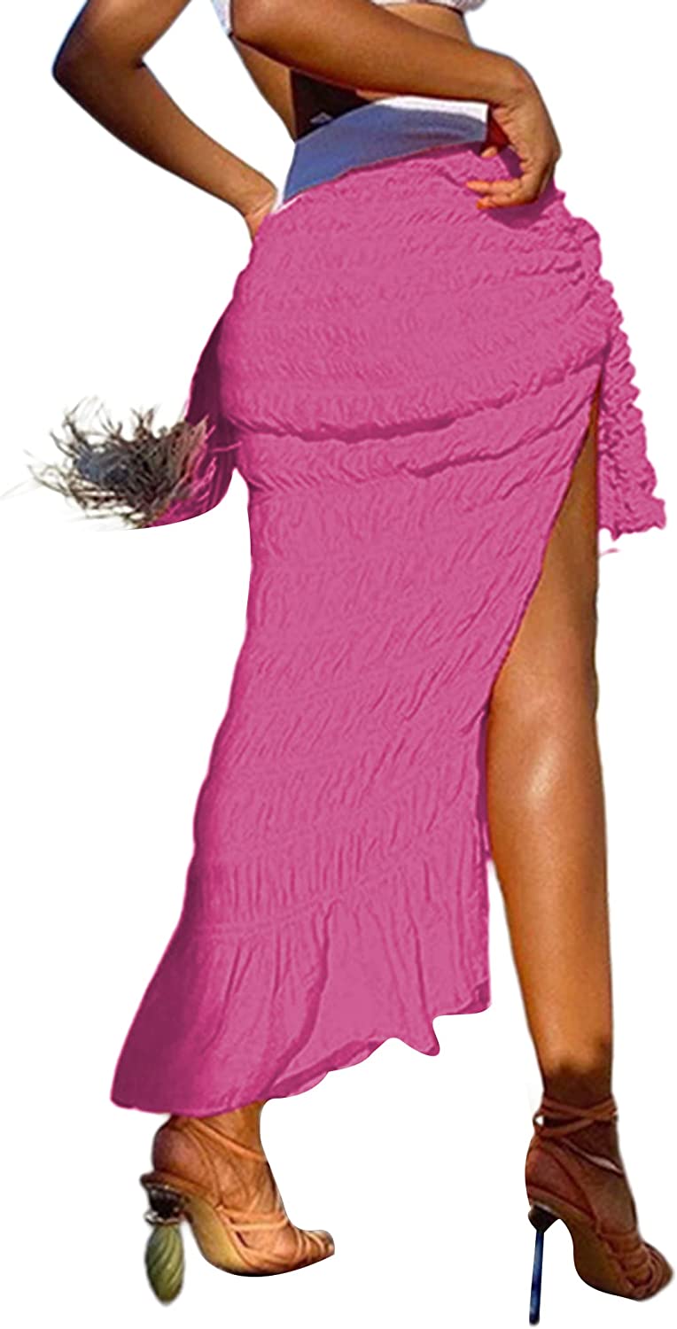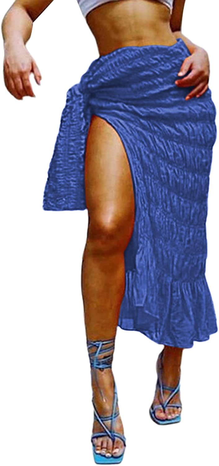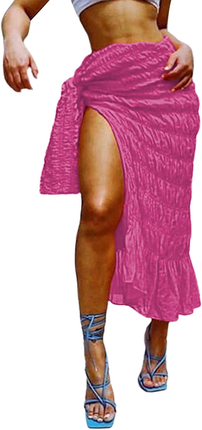 • Features: Sexy high waisted midi skirts for women, feature with split side design, ruffle hem, pleated ruched sarong skirt, knot waist cover up skirt, summer boho beach skirts