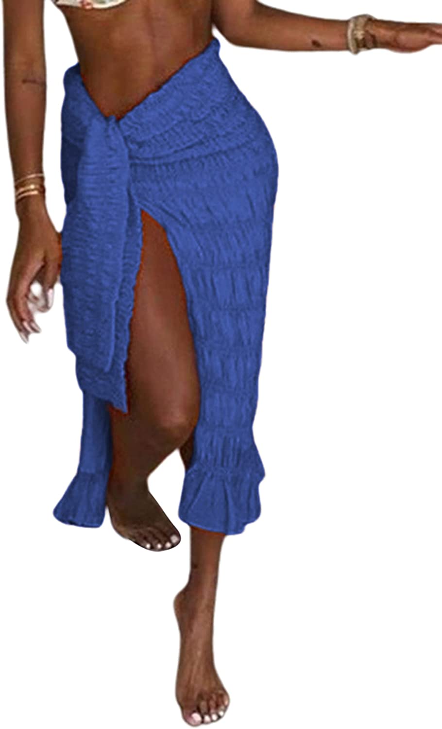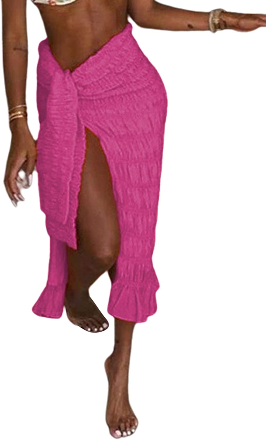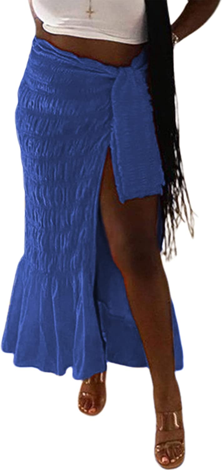 • Features: Sexy high waisted midi skirts for women, feature with split side design, ruffle hem, pleated ruched sarong skirt, knot waist cover up skirt, summer boho beach skirts