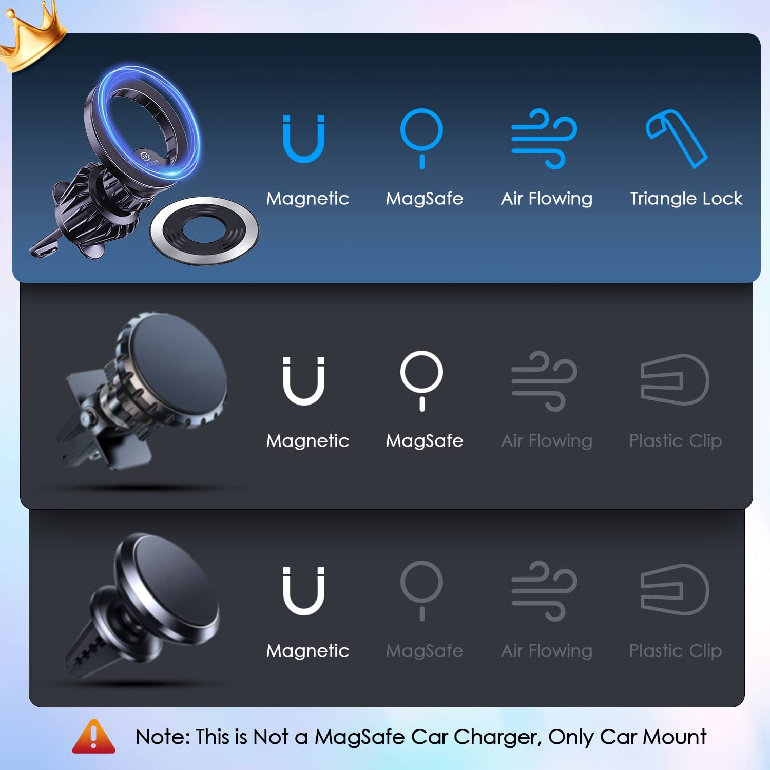 Compact Design: This compatible MagSafe phone mount only takes up a little space and won't block your air vent yet very reliable in securely holding your phone. Compatible with horizontal and vertical vents.
