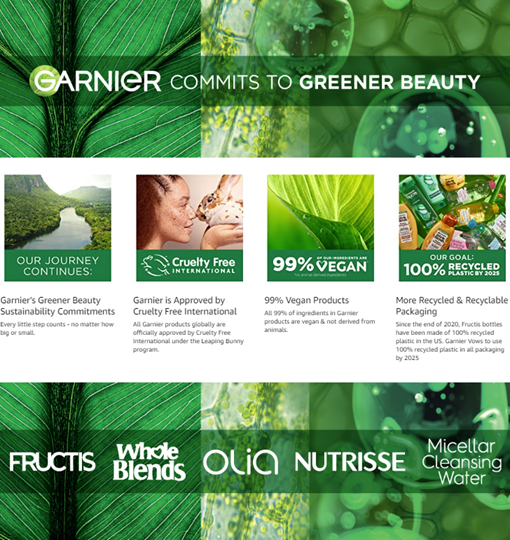 • Garnier is committed to Greener Beauty - our bottles excluding pumps and caps are made of 100% Recycled Plastic