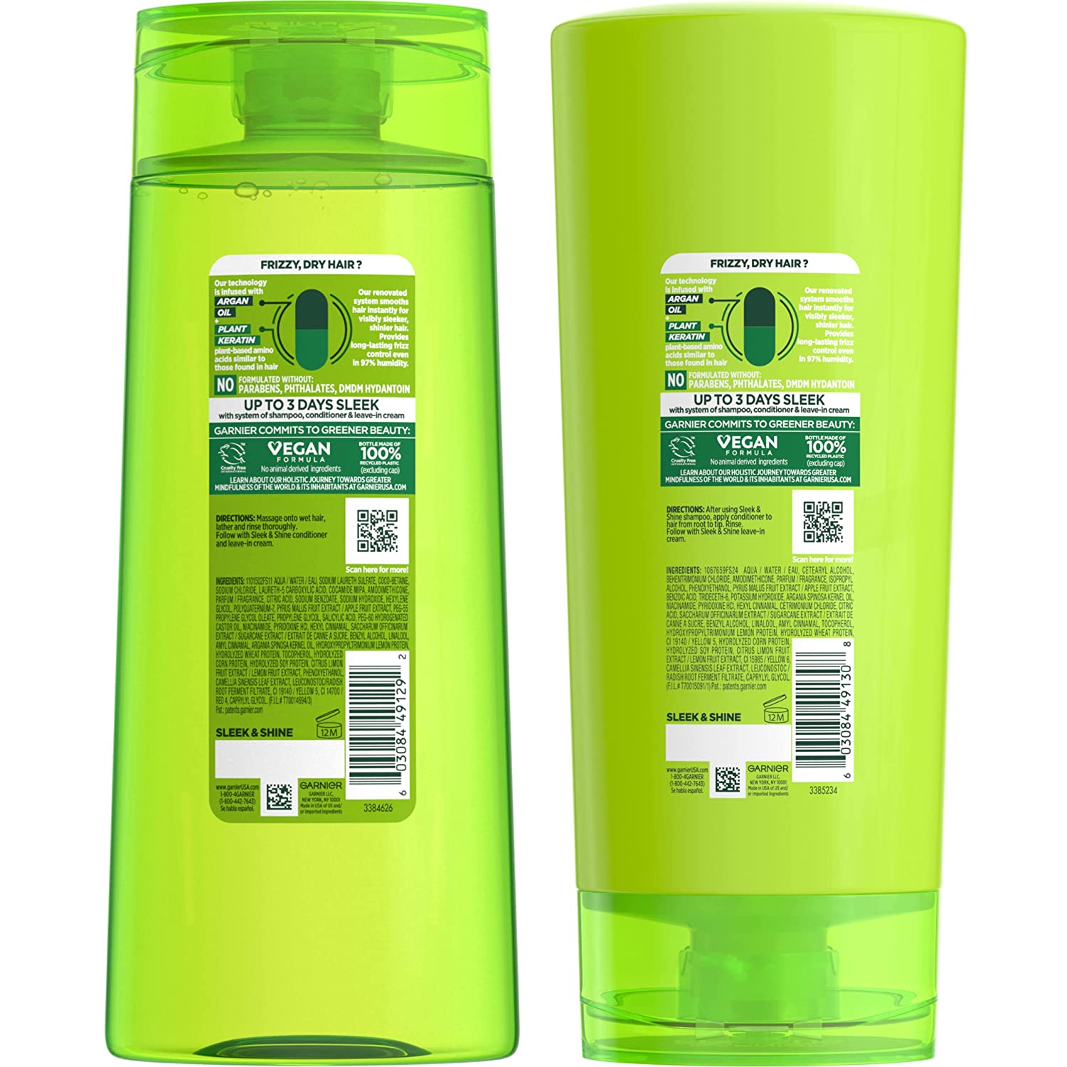 Garnier Fructis Sleek & Shine Shampoo (22 Fl Oz) + Conditioner (21 Fl Oz) Set for Frizzy, Dry Hair, Plant Keratin + Argan Oil (2 Items), 1 Kit (Packaging May Vary)
