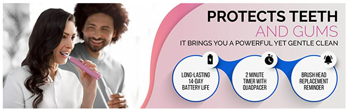 • Sonic Electric Toothbrush For Adults - Optimize your brushing with SmarTimer and QuadPacer - 2 minute SmarTimer and 30-second QuadPacer guide you to brush for the recommended time in all areas of your mouth to ensure a complete clean.